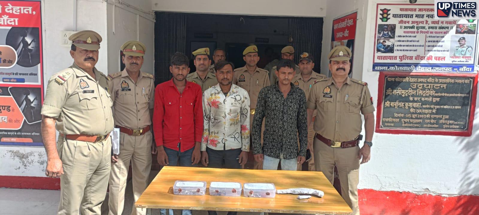 पुलिस अधीक्षक पलाश बंसल के निर्देशन में जनपद में अपराध एवं अपराधियों पर नियंत्रण लगाये जाने तथा वांछित अभियुक्तों की गिरफ्तारी हेतु चलाए जा रहे अभियान के क्रम में अपर पुलिस अधीक्षक शिवराज व अपर पुलिस अधीक्षक /क्षेत्राधिकारी नगर मेविस टॉक के पर्यवेक्षण में थाना कोतवाली देहात पुलिस द्वारा थाना कोतवाली देहात क्षेत्रान्तर्गत छनेहरालालपुर में 02 घरों का ताला तोड़कर हुई चोरी की घटना का सफल अनावरण करते हुए 03 अभियुक्तों को गिरफ्तार किया गया है। अभियुक्तों के कब्जे से चोरी के करीब 3.5 लाख रुपए कीमत के आभूषण,नकद रुपए सहित अवैध तमंचा व कारतूस बरामद हुए है। सहायक एसपी मेविस टॉक ने बताया कि थाना कोतवाली देहात क्षेत्र के छनेहरालालपुर के रहने वाले मुखिया पुत्र भुरईया व मुन्ना ने अपने घर में दिनांक 25 मार्च को व मुन्ना पुत्र मइयादिन ने अपने घर में दिनांक 28 मार्च को अज्ञात चोर घर का ताला तोड़कर लाखों का माल पर कर ले गए थे। मुकदमा दर्ज करने के बाद अभियुक्तों की पहचान व गिरफ्तारी हेतु टीमों का गठन किया गया। जिसके क्रम में थाना कोतवाली देहात पुलिस टीम द्वारा संदिग्धों से पूछताछ,वैज्ञानिक व तकनिकी साक्ष्यों का प्रयोग कर अभियुक्तों की पहचान करते हुए सूचना के 12 घण्टे के अन्दर मुखबिर की सूचना पर अभियुक्त विवेक कुमार पुत्र रामेश्वर निवासी छनेहरालालपुर थाना कोतवाली देहात,सुरेश उर्फ मोती पुत्र दुर्जन निवासी छनेहरालालपुर, संतोष कुमार पुत्र बद्दू निवासी छनेहरालालपुर