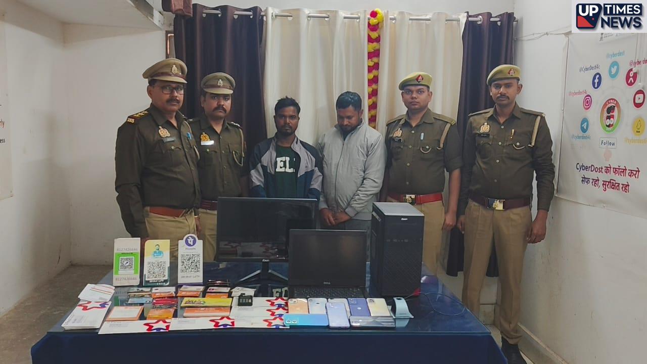 मुख्यमंत्री योगी आदित्यनाथ द्वारा चलाए जा रहे जीरो टॉलेरेंस टू वर्ड फ्रॉडस्टर्स नीति के क्रम में बुधवार को पुलिस अधीक्षक पलाश बंसल के कुशल निर्देशन में व अपर पुलिस अधीक्षक शिवराज तथा क्षेत्राधिकारी साइबर सौरभ सिंह के निकट पर्यवेक्षण में जनपद में साइबर अपराधों की रोकथाम एवं अपराधियों की गिरफ्तारी हेतु चलाए जा रहे विशेष अभियान के क्रम में थाना साइबर क्राइम द्वारा फर्जी दस्तावेजों व डिजिटल माध्यमों से की जा रही ऑनलाइन साइबर ठगी के एक संगठित गिरोह का सफल अनावरण करते हुए 02 अभियुक्तों को गिरफ्तार किया है। सहायक एसपी मेविस टॉक ने बताया कि मंगलवार को भगत सिंह पुत्र रामेश्वर सिंह निवासी जवाहर नगर थाना कोतवाली नगर द्वारा थाना साइबर क्राइम पर सूचना दी गई कि उसका मित्र वरूण अग्रवाल पुत्र शिवकुमार निवासी कानपुर नगर जो कि बालाजी ट्रेर्डस के प्रोपराइटर है। के द्वारा बताया गया कि उनके GST के फर्जी कागजात बनाकर/उपयोग कर अनिल व चंद्रकिशोर निवासीगण तिंदवारा थाना कोतवाली नगर द्वारा लोगों को ऑनलाइन सामान बेचने का प्रलोभन देकर साइबर ठगी की जा रही है। प्रकरण की गंभीरता को देखते सूचना पर तत्काल थाना साइबर क्राइम बांदा पर अभियोग पंजीकृत करते हुए साइबर थाना की टीम द्वारा डिजिटल ट्रैकिंग, मोबाइल विश्लेषण तथा इलेक्ट्रॉनिक साक्ष्यों के संकलन कर अभियुक्तों की गिरफ्तारी के प्रयास किए जा रहे थे। इसी क्रम में बुधवार को मुखबिर की सूचना तथा तकनीकी साक्ष्यों के आधार पर अभियुक्तों को तिंदवारा बाइपास के पास गिरफ्तार कर लिया गया है। पूछताछ में जुर्म स्वीकार करते हुए अभियुक्तों द्वारा बताया गया कि उनके द्वारा कूटरचित आधार कार्ड, फर्जी पैन कार्ड, अवैध रूप से तैयार QR कोड तथा GST नंबर का दुरुपयोग कर आम नागरिकों को ऑनलाइन सामान बेचने का झांसा देकर उनसे धनराशि की ठगी करते थे । गिरफ्तार अभियुक्तों कि निशांदेही पर भारी मात्रा में फर्जी एटीएम कार्ड, पासबुक,आधार-पैन, स्वाइप मशीन,मोबाइल फोन,लैपटॉप,मॉनिटर, फिंगर प्रिंट स्कैनर व अकाउंट किट तथा सिम कार्ड किट बरामद हुए है।गिरफ्तार करने वाली टीम में प्रभारी निरीक्षक साइबर क्राइम राजेश चन्द्र मिश्रा,उप निरीक्षक आकाश शुक्ला,आरक्षी विनोद कुमार,हिमांशु वर्मा,ललित कुमार शामिल रहे।