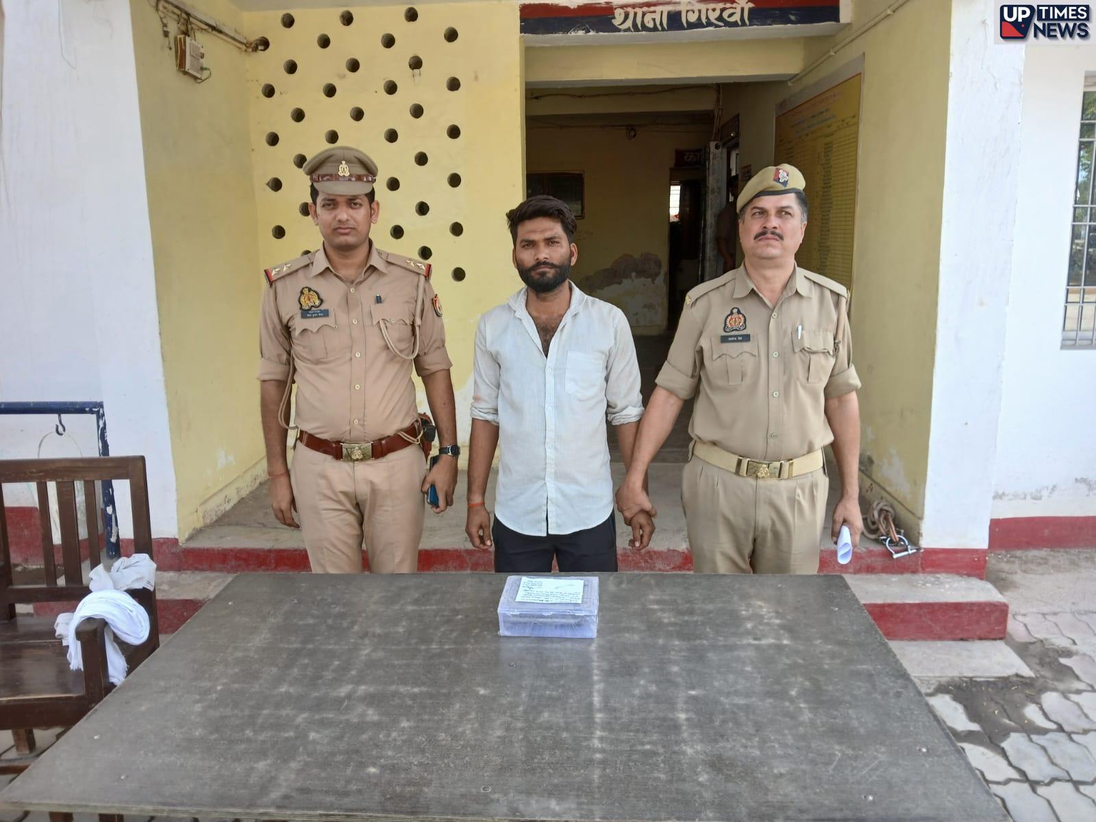 प्रभारी निरीक्षक सुरेश कुमार सैनी ने बताया कि रविवार को थाना गिरवां पुलिस को गश्त एवं संदिग्ध व्यक्तियों/वाहनों की चेकिंग के दौरान ग्राम स्योढ़ा से अभियुक्त राज उर्फ राहुल पुत्र रामसिंह निवासी खानपुर थाना गिरवां को अवैध पिस्टल व जिन्दा कारतूस के साथ गिरफ्तार किया गया है। मुकदमा दर्ज कर पुलिस ने अभियुक्त को जेल भेज दिया है। गिरफ्तार करने वाली टीम में गौरव कुमार मिश्रा चौकी प्रभारी माँ विन्ध्यवासिनी धाम,आरक्षी गोकुलेश कुमार मिश्रा,संजय कुमार शामिल रहे।